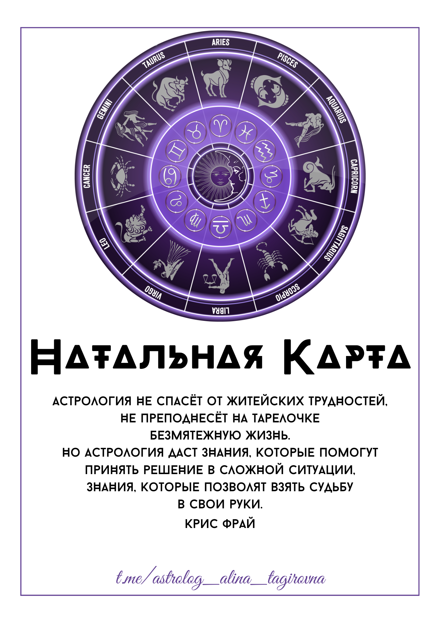 Астрология не несет в себе фатальности, предопределенности, главный автор своей жизни Вы сами, выбор всегда остается за Вами! Любой кризис – это точка роста. Если чувствуете, что что-то пора менять – обращайтесь к астрологу.